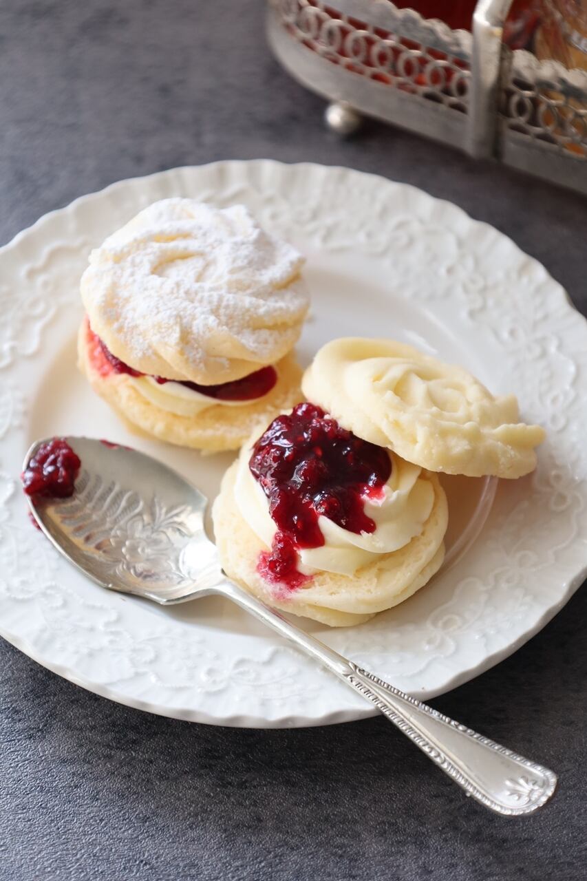 ホロホロした食感が美味しいクッキーにバタークリーム、ラズベリージャムをサンド。