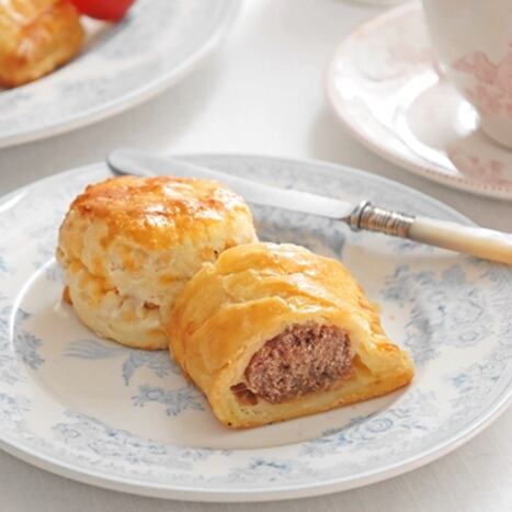 ⑤ショートクラストペイストリーを使った「英国のフレッシュハーブのソーセージロール」をご紹介。挽肉から作ったタネを使い作る英国では定番の軽いスナック。アフタヌーンティーに添えてあったり、ピクニックのお供にしたり。。相性抜群の〈ハニーマスタードソース〉もご紹介。